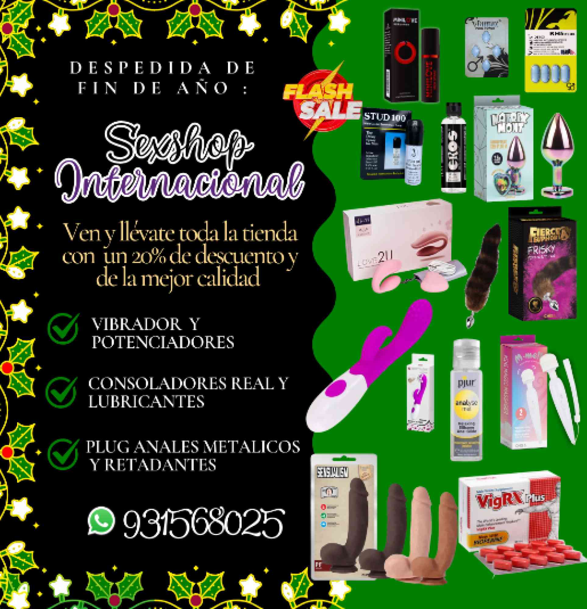Despedida De Fin De Año, Ven Y Llévate Toda La Tienda Con Un 20 De Descuento Y De La Mejor Calidad En Sexshop Internacional Encuentra Los Mejores Plug Anales Metálicos, Retardantes, Vibrador Y Potenciadores, Consoladores Real Y Lubricantes